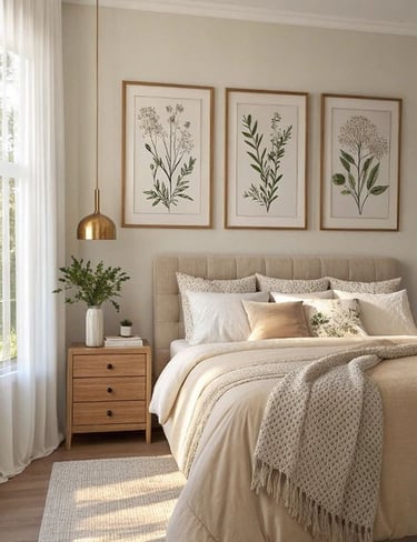 Um quarto de casal deve ser um refúgio que reflete a personalidade e os gostos dos seus ocupantes. Entre os diversos elementos decorativos que podem ser utilizados para criar esse ambiente, os quadros se destacam como opções atraentes e versáteis. Um quadro decorativo com tema botânico minimalista traz uma estética clean e tranquila, ideal para promover um ambiente relaxante, essencial em um espaço destinado ao descanso e à intimidade.