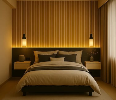 As placas ripado autocolante MDF oferecem uma alternativa contemporânea e prática para quem procura incrementar a estética das paredes do quarto de casal. Esse tipo de revestimento se destaca por sua capacidade de adicionar textura e profundidade, conferindo um aspecto moderno e acolhedor ao ambiente. O uso de MDF autocolante é uma solução que facilita a aplicação, eliminando a necessidade de grandes reformas ou trabalhos complexos, permitindo que os moradores realizem a transformação com facilidade.