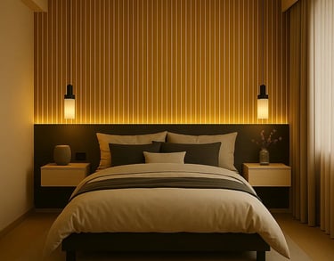 As placas ripado autocolante MDF oferecem uma alternativa contemporânea e prática para quem procura incrementar a estética das paredes do quarto de casal. Esse tipo de revestimento se destaca por sua capacidade de adicionar textura e profundidade, conferindo um aspecto moderno e acolhedor ao ambiente. O uso de MDF autocolante é uma solução que facilita a aplicação, eliminando a necessidade de grandes reformas ou trabalhos complexos, permitindo que os moradores realizem a transformação com facilidade.
